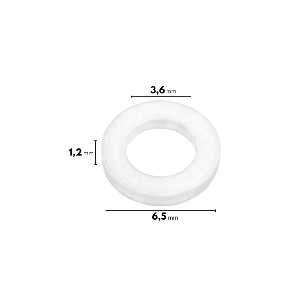 - Medidas: 6,5 x 3,6 x 1,2mm (Diâmetro externo x Diâmetro interno x Espessura);