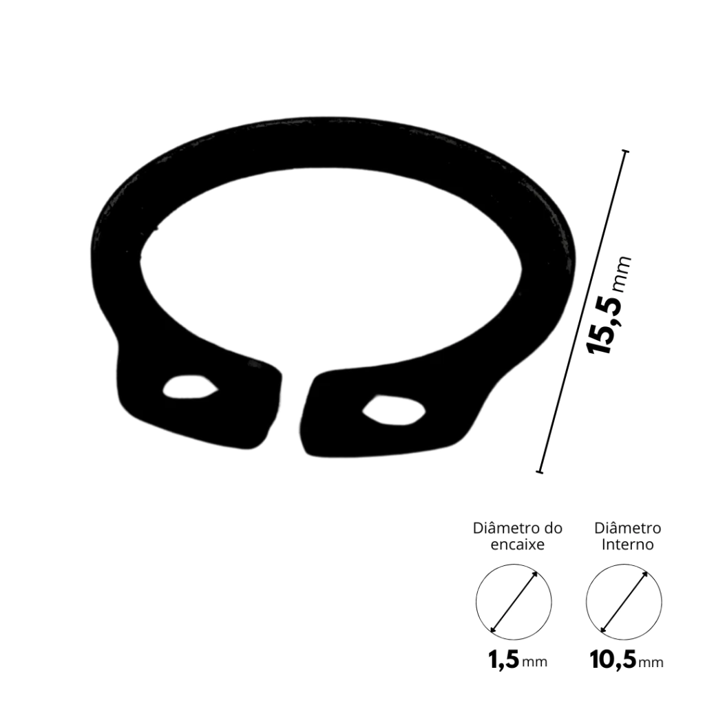 - Medidas: 15,5 × 10,5 x 1,5mm (Comprimento x Diâmetro interno x Diâmetro do encaixe);