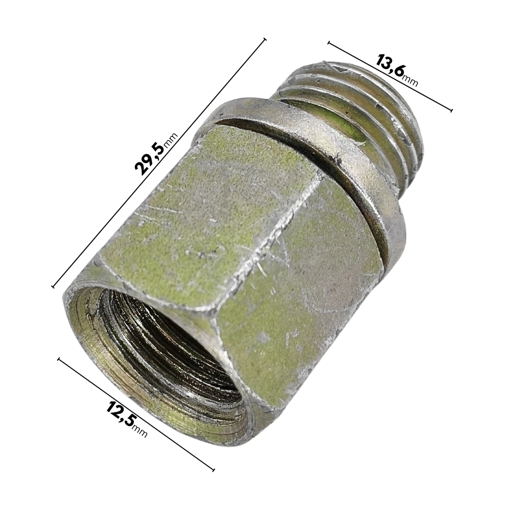 União: 13,6 x 12,5 x 29,5mm (Diâmetro da rosca maior x Diâmetro da rosca menor x Comprimento);