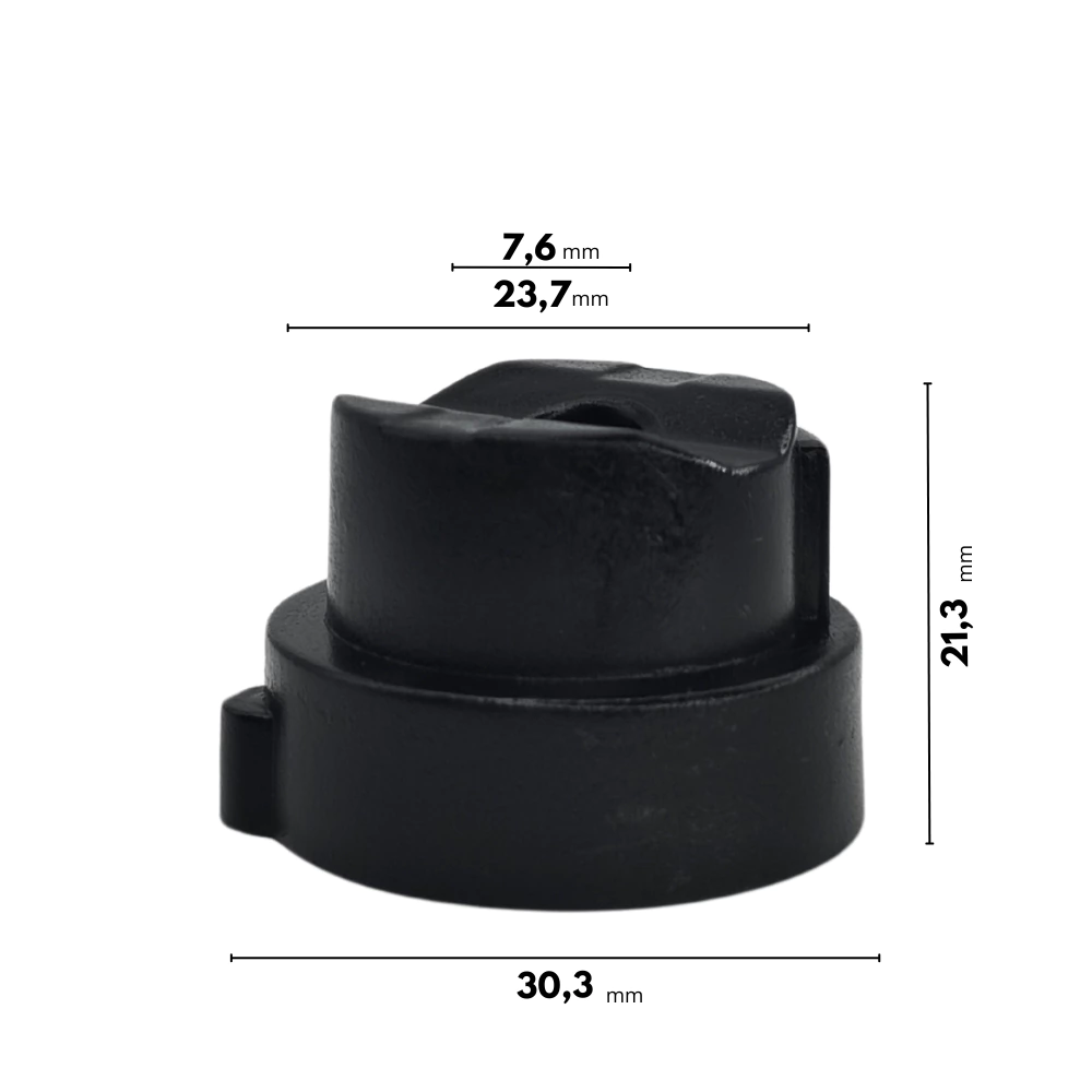 - Medidas: 21,3 x 30,3 x 23,7 x 7,6mm (Altura x Diâmetro inferior x Diâmetro superior maior x Diâmetro superior menor);