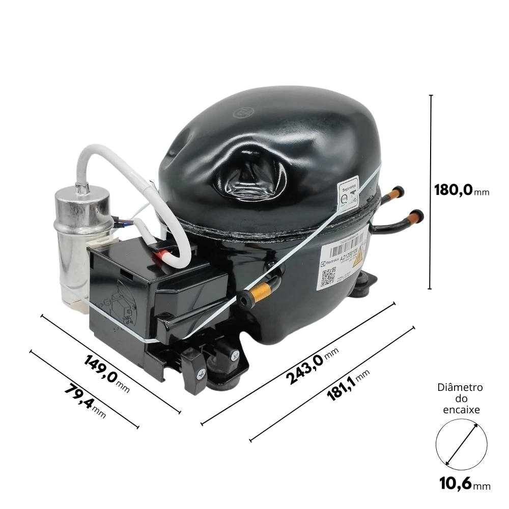 Este compressor EL70C 1/5 R600a serve para garantir o desempenho ideal do refrigerador, evitando superaquecimento com um protetor térmico de desligamento automático. Conta com um capacitor metálico que oferece mais segurança e durabilidade. Projetado para facilitar a instalação, possui componentes acoplados em uma peça única, garantindo praticidade e um funcionamento eficiente. Verifique a marca e modelo antes de confirmar a compra, produto compatível somente com o modelo deste anúncio. Não nos responsabilizamos por danos causados pela instalação incorreta do produto, em caso de dúvidas consulte um técnico especialista.