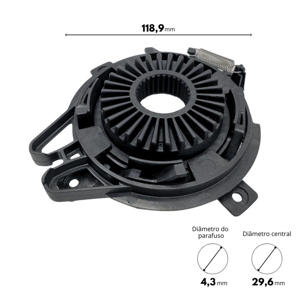 - Medidas: 118,9 x 29,6 x 4,3mm (Diâmetro total x Diâmetro do parafuso x Diâmetro central);
