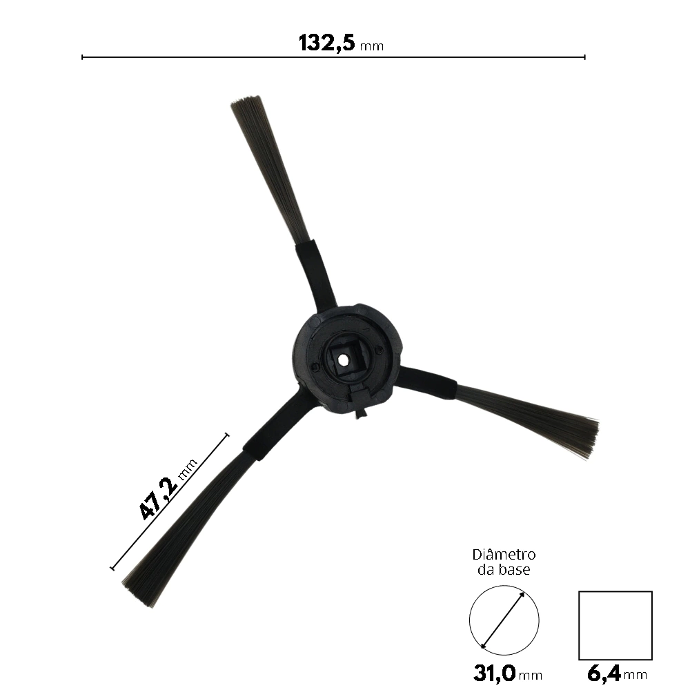 - Medidas: 47,2 x 31,0 x 132,5 x 6,4mm (Comprimento das cerdas x Diâmetro da base x Diâmetro total x Lados do encaixe);