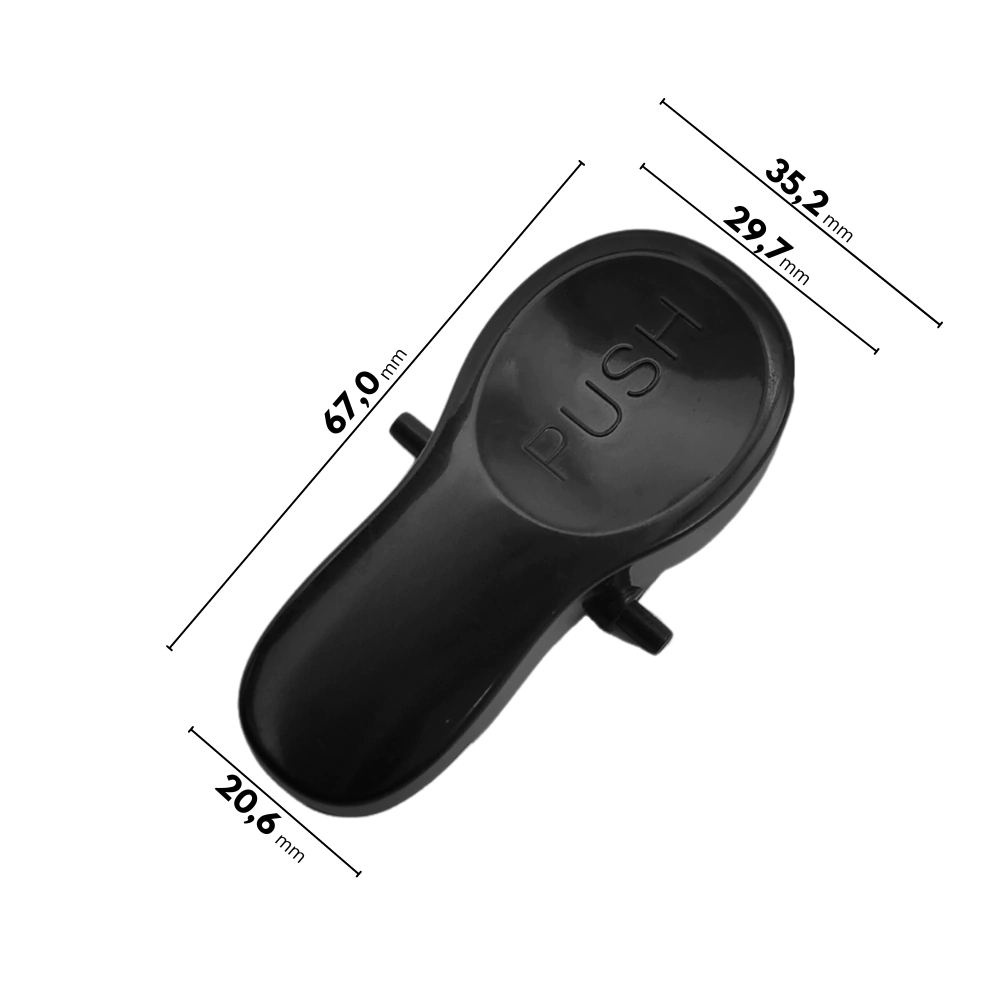 - Medidas: 67,0 x 35,2 x 29,7 x 20,6mm (Comprimento do botão x Largura das travas laterais x Largura do botão x Largura menor);