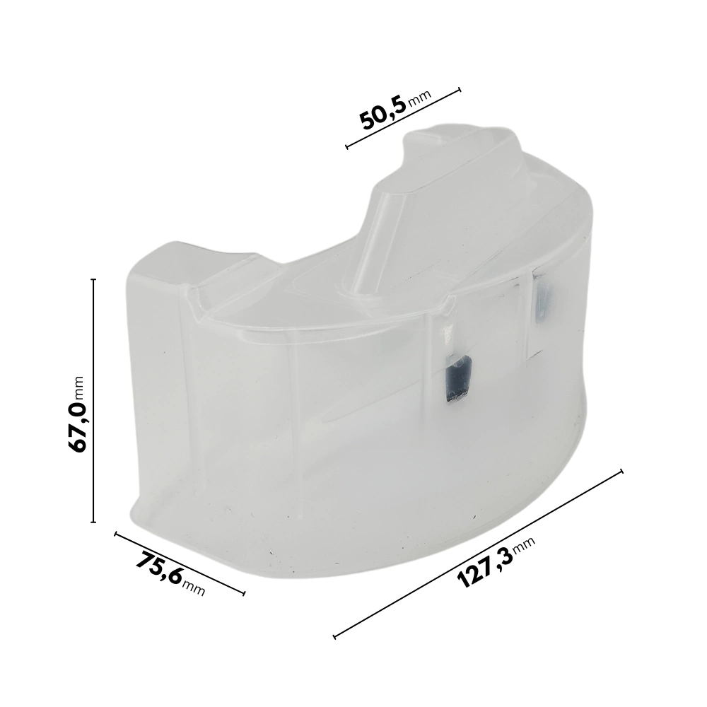 - Medidas: 67,0 x 75,6 x 127,3 x 50,5mm (Altura x Largura x Comprimento x Largura da entrada do recipiente);