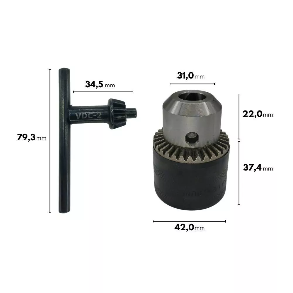 - Acompanha: 01 unidade de mandril leve e 01 unidade de chave para mandril n° 2;