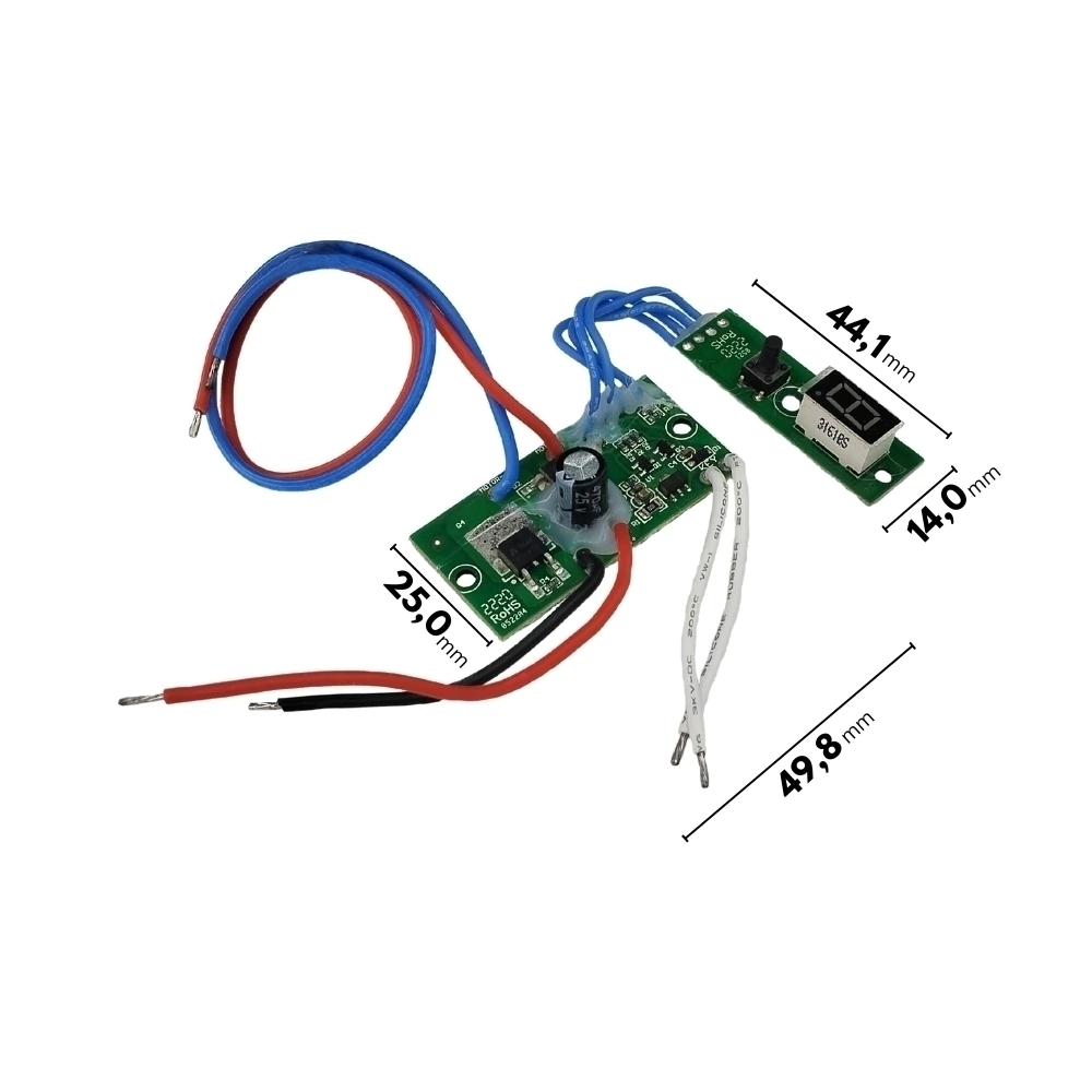 - Medidas: 49,8 x 25,0 x 44,1 x 14,0mm (Comprimento da placa x Largura da placa x Comprimento do botão x Largura do botão);